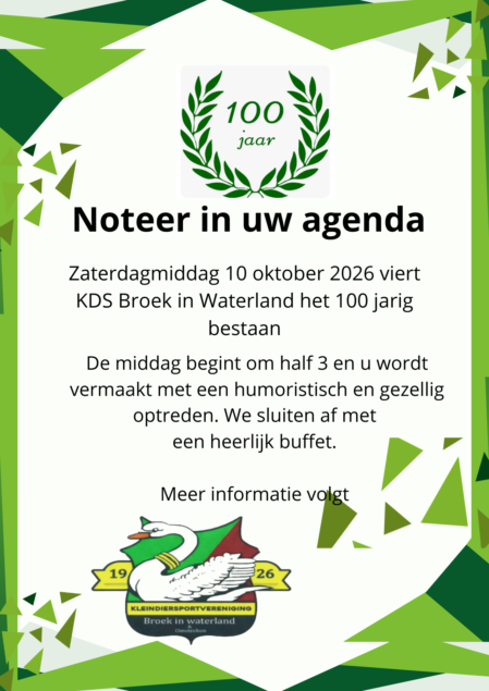 - 10 oktober Feestmiddag 100 jarig bestaan in Dorpshuis Zuiderwoude